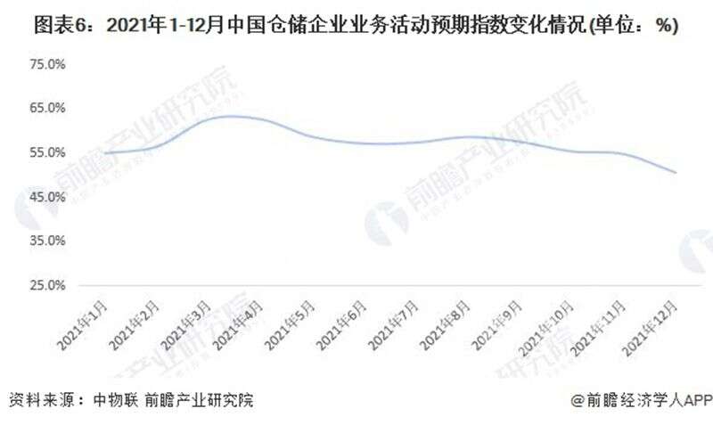 從中物聯(lián)發(fā)布的中國倉儲指數(shù)中的新訂單指數(shù)變化情況來看,2021年2-12月中國倉儲業(yè)新訂單指數(shù)均值為51.8%,同比下降0.4個百分點;顯示出倉儲行業(yè)受新冠疫情、全球經(jīng)濟下行等因素影響導(dǎo)致行業(yè)需求整體趨弱。