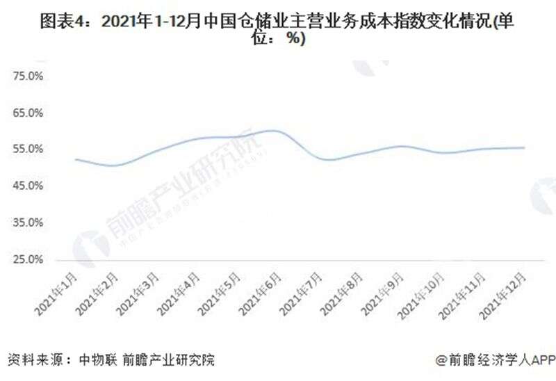 根據(jù)中國物流與采購聯(lián)合數(shù)據(jù),2021年1-12月,中國倉儲業(yè)主營業(yè)務(wù)成本指數(shù)均值為55.3%,同比增長3.1個百分點,顯示2021年倉儲行業(yè)成本支出增速有所提升,企業(yè)經(jīng)營壓力較大,倉儲行業(yè)降本增效仍需進一步夯實。